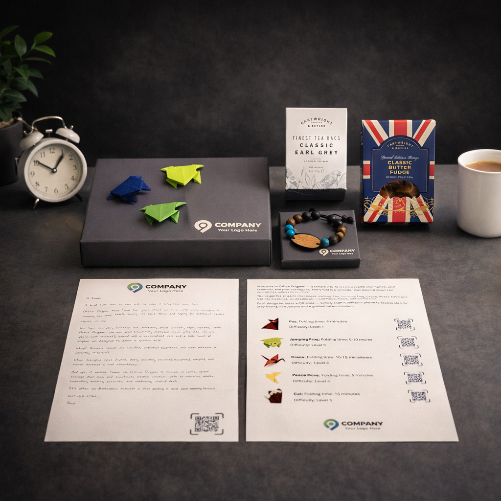 Office Origami is much more than just origami — it’s a full creative gifting experience. Alongside our iconic folding packs, we offer hundreds of unique, personalised items designed to spark joy, boost team morale, and create memorable moments in any workplace... all that can be coupled with an Origami Pack and beautiful robot-written letter.